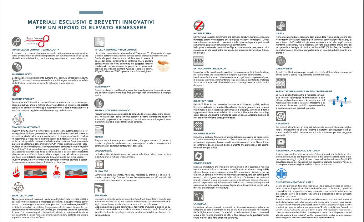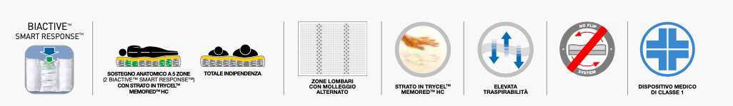 - Tecnologia Avanzata: Molle rivestite e indipendenti con 5 zone di supporto. Il sistema Biactive™ Smart Response™ e Pocketed Coil™ offrono un adattamento unico.