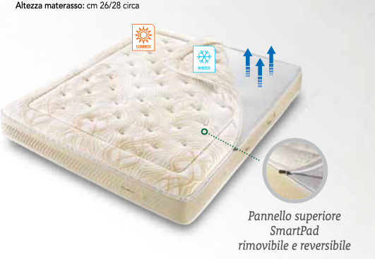 Il materasso Excellence TM Smart di SIMMONS rappresenta il massimo del comfort e della qualità, frutto di un’azienda con oltre 150 anni di esperienza nel settore del riposo. SIMMONS è rinomata per la sua innovativa tecnologia del sonno, offrendo prodotti progettati per migliorare la qualità del riposo. Questo modello Excellence presenta una struttura a molleggio differenziato e un design No Flip System, riducendo così la manutenzione. Le imbottiture concentrate nella parte superiore garantiscono un comfort eccezionale, mentre il pannello SmartPad, reversibile, assicura un comfort termico ideale per ogni stagione ed è anche rimovibile e lavabile a secco. La sua completa adattabilità al corpo offre un supporto anatomico straordinario. Disponibile in portanza media e rigida, ha uno spessore di circa 26/28 cm.