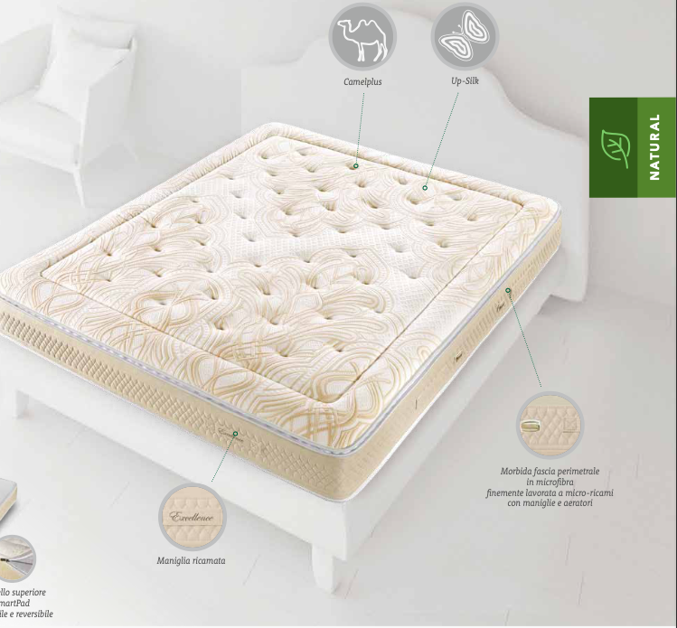 - Imbottitura Sostenibile: Composta da materiali di alta qualità, con strati in Relastic™ Fiber e imbottiture innovative come Camelplus e Up-Silk, per una termoregolazione ottimale.